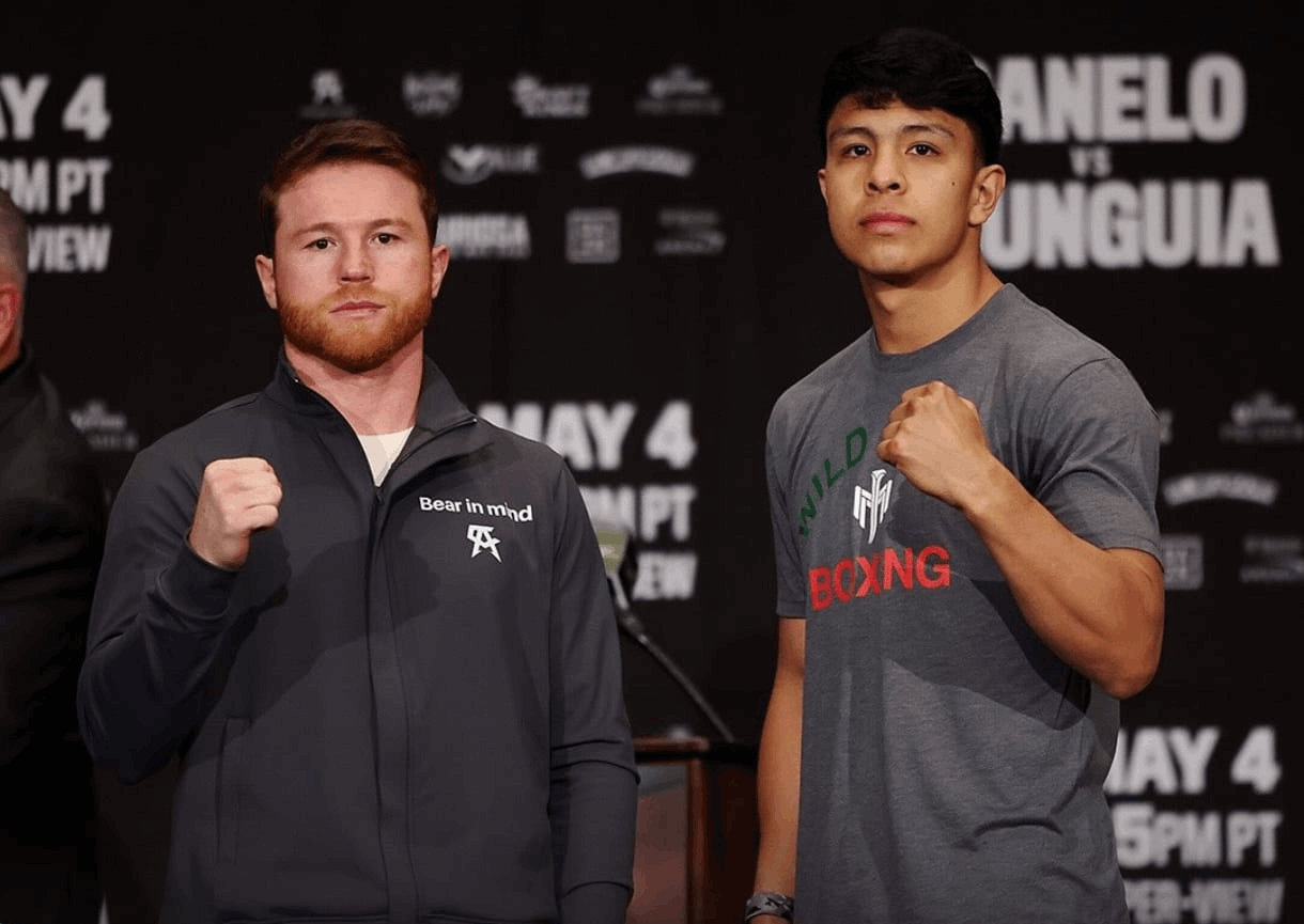 "Lo único que hace este hombre (De la Hoya) es robarle a los boxeadores. ¿Ya le pagaste a Golovkin?", comentó molestó Canelo en su turno al micrófono, "no viene a promover la pelea, viene a robarle la atención a Jaime Munguía".