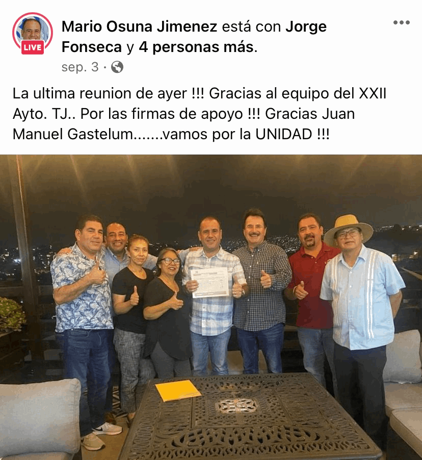 Su planilla estará integrada por algunas personalidades de la política, entre ellos destacan Rocío Rodríguez, ex diputada local, José Guadalupe Osuna Millán y Alejandro González Alcocer, ex gobernadores de Baja California. También se le unió Jorge Ramos Hernández, ex presidente municipal de Tijuana, Carmen Iñiguez, ex regidora, Gustavo Sánchez Vásquez, ex alcalde de Mexicali. La ahora Senadora Gina Cruz y para finalizar Natalia Figueroa, ex regidora.