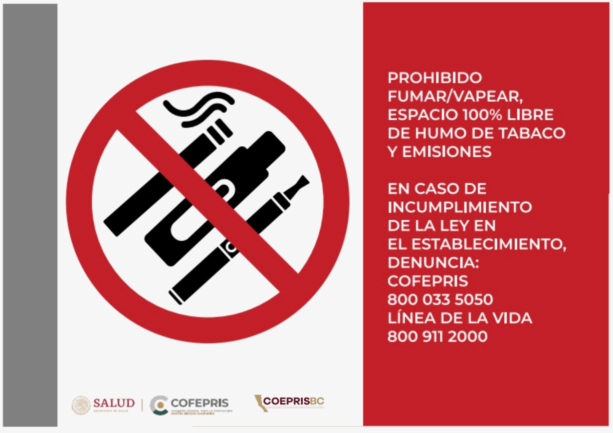 TIJUANA, B.C.- martes 31 de mayo 2022.- Como parte de las acciones permanentes que realiza la Comisión Estatal para la Protección contra Riesgos Sanitarios de Baja California (COEPRIS BC), es el garantizar el respeto a los espacios libres de humo de tabaco, así lo dio a conocer su titular, Erwin Areizaga Uribe, por lo cual se invita denunciar aquellos establecimientos donde no se respeta esta medida.