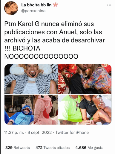 ‘’Ptm Karol G nunca eliminó sus publicaciones con Anuel, solo las archivó y las acaba de desarchivar !!! BICHOTA NOOOOOOOOOOOOOO’'