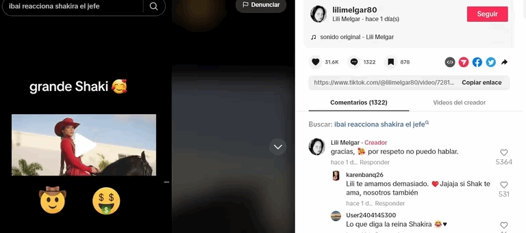 “Lili te amamos demasiado. Jajaja si Shak te ama, nosotros también”; “Todos los fans de Shak te queremos Lili”; “Te entendemos Lili, que te vaya bonito en todo siempre”; “Tu no te llamas Lili Melgar ... TU te llamas LEALTAD”; “Lili Melgar en nombre de todas las mujeres te amamos y gracias por devolvernos a nuestra Shaki de antes”; “Por más gente con esa lealtad, mi respeto Lili Melgar... una empleada que por lealtad perdió su trabajo, merecido reconocimiento”, fueron algunos de los comentarios que le dejaron en su publicación.