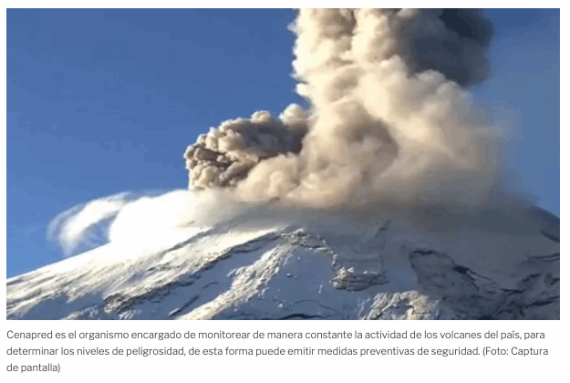 Cenapred es el organismo encargado de monitorear de manera constante la actividad de los volcanes del país, para determinar los niveles de peligrosidad, de esta forma puede emitir medidas preventivas de seguridad.