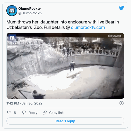 Uzbekistán.- Una niña de tres años fue lanzada por su madre a la jaula de un oso en un zoológico de Taskent, capital de Uzbekistán.