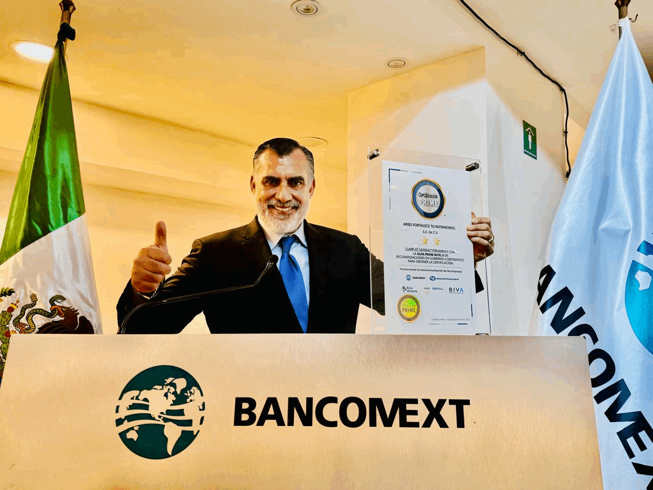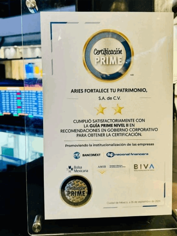 Grupo Aries recibió el certificado PRIME por cumplir satisfactoriamente con la Guía PRIME de prácticas institucionales mediante un gobierno corporativo sólido y sostenible como desarrollador multinacional de grandes proyectos inmobiliarios desde 2002 en distintas regiones turísticas y de gran valor en México.