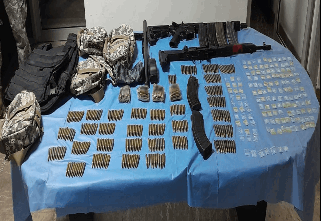-Al realizar actividades de seguridad y vigilancia el municipio de Culiacán, elementos del Ejército Mexicano aseguraron dos armas de fuego largas, 39 cargadores, 800 cartuchos útiles, cinco chalecos tácticos, ponchallantas y dos camionetas.