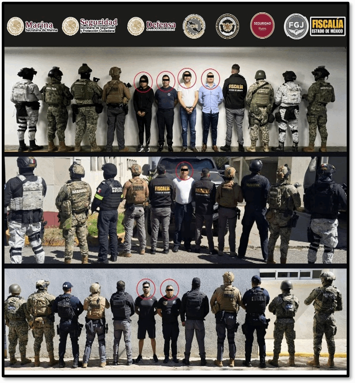 -En los municipios de Tejupilco, Jilotzingo, Ixtapaluca, Amanalco, Tonatico, Texcaltitlán, Naucalpan y Chicoloapan, se realizó el operativo “Enjambre”, donde se cumplimentaron 7 de 14 órdenes de aprehensión contra funcionarios públicos de los municipios. En el operativo participaron elementos de la SSPC, Defensa, GN, Marina, FGR, Centro Nacional de Inteligencia (CNI) y FGJ.