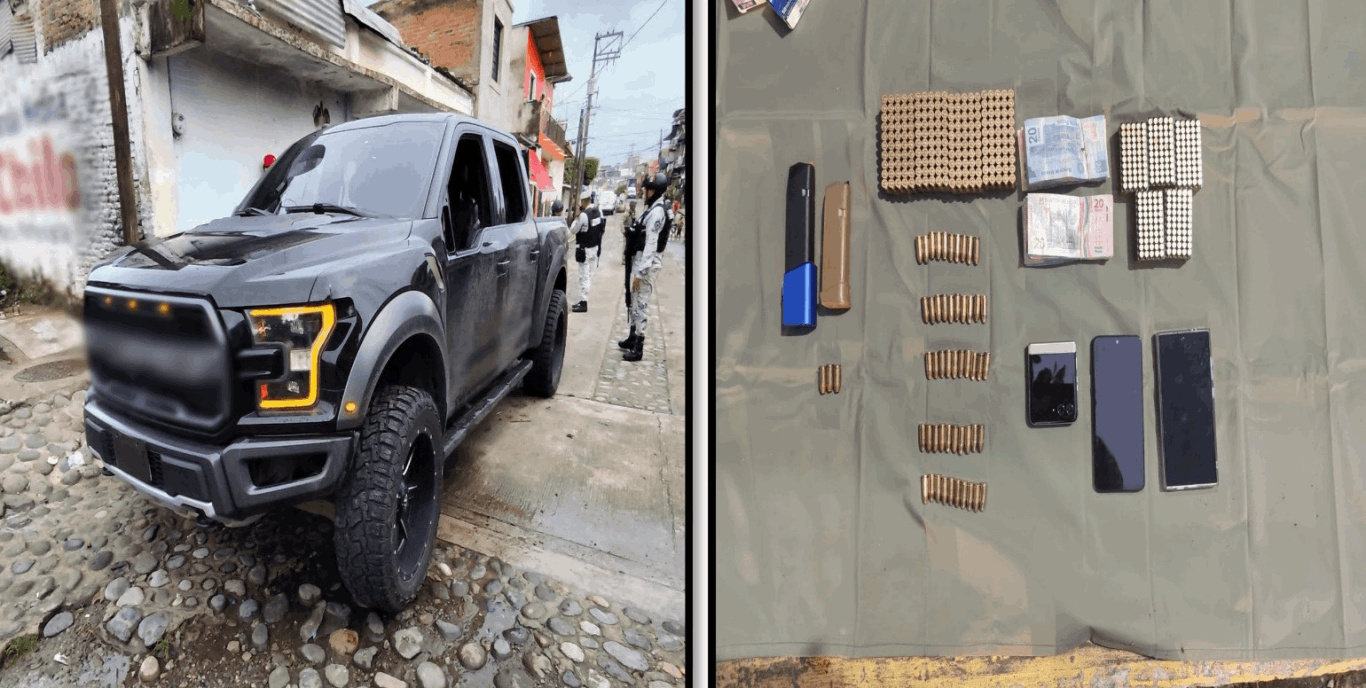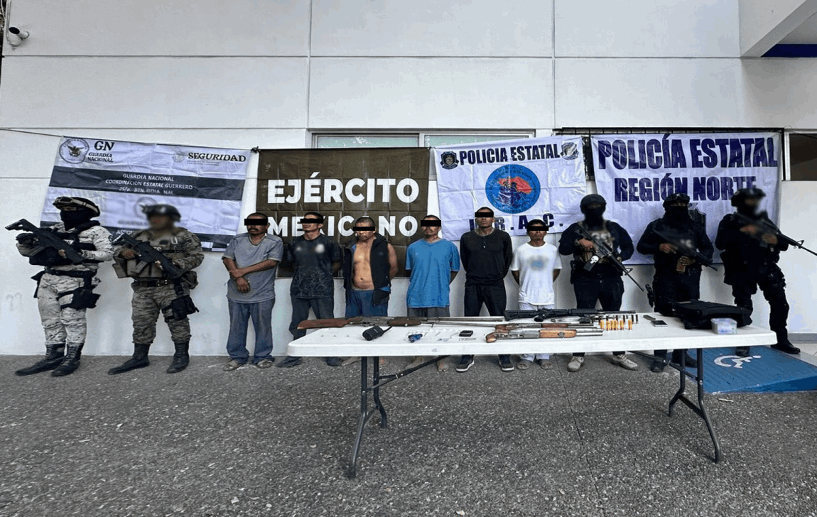 -En el municipio de Tepecoacuilco, elementos de la Defensa, GN, Fiscalía y Policía Estatal ejecutaron órdenes de aprehensión contra seis personas, acusadas por el delito de desaparición forzada, les aseguraron seis armas de fuego largas, un arma corta, diversas dosis de metanfetamina, un chaleco táctico, un equipo de radio comunicación, una motocicleta y un vehículo.