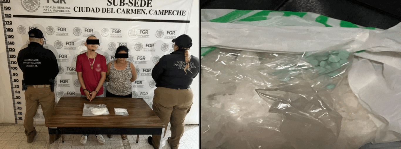 -Personal de la Fiscalía General de la República (FGR) y Secretaría de Marina (Semar) ejecutó una orden de cateo en un domicilio en la colonia Primero de Mayo, del municipio de Ciudad del Carmen y detuvieron a un hombre y una mujer, además, aseguraron un kilo de metanfetamina y pastillas de fentanilo.