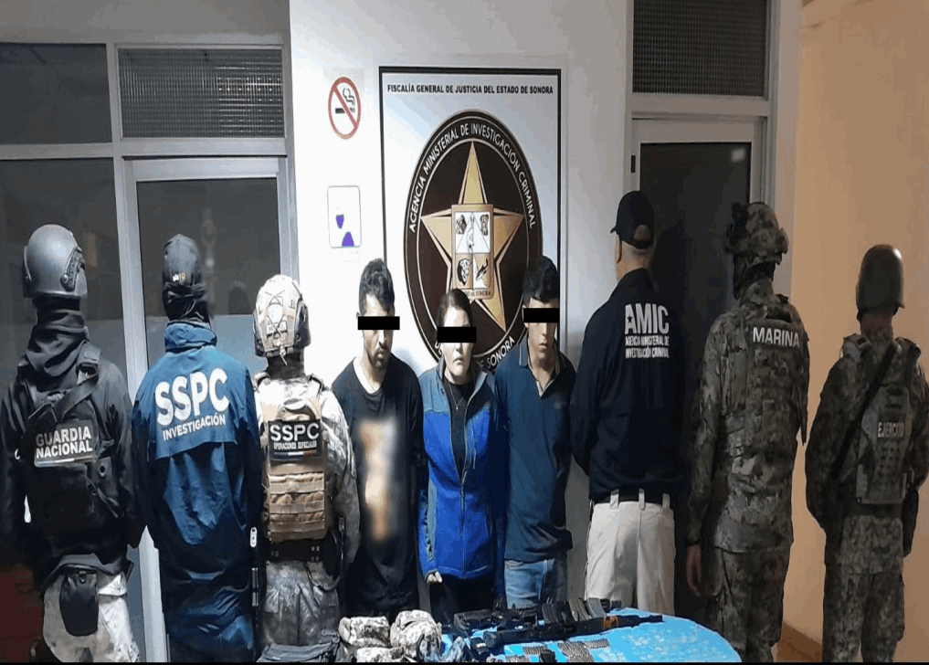 -Derivado de información de trabajos de inteligencia, en Puerto Peñasco, elementos de la Fiscalía General del Estado, en coordinación con la Semar, efectuaron el cateo a un domicilio y detuvieron a cinco personas, uno de ellos presunto integrante de una célula delictiva, asegurando metanfetamina, 5 armas largas, 2 vehículos, uno con blindaje artesanal y 3 teléfonos celulares, en inmediaciones de la colonia “El Polvorín” y un rancho.