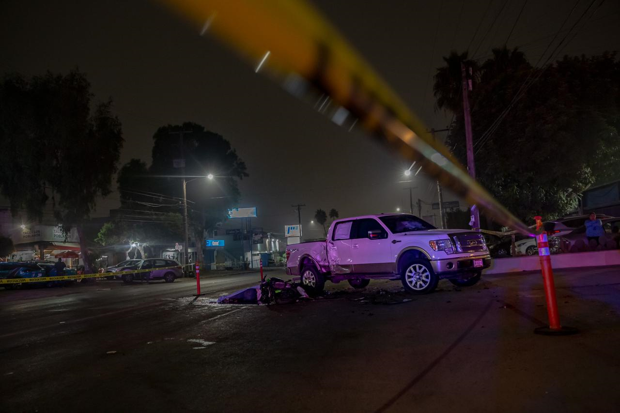 Alrededor de las 22:00 horas de la noche del sábado 5 de octubre, se registró un fuerte accidente de tránsito sobre Paseo Ensenada, entre la calle Lluvia y la calle Nube de la colonia Playas de Tijuana, en donde un motociclista perdió la vida, tras impactarse con un pickup.