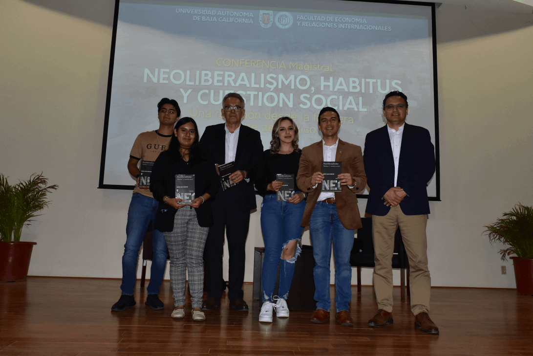 Teniendo como sede el auditorio de la Facultad de Economía y Relaciones Internacionales, de la UABC Plantel Tijuana, presento aspectos de su libro “Neoliberalismo. "Habitus" y cuestión social”