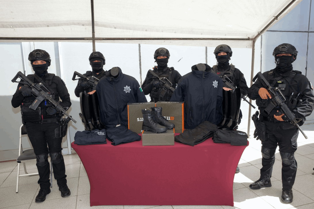 El paquete de uniformes que fue entregado a cada elemento, consta de dos camisas marca 5.11 color azul marino, blanco o negro según sea requerido, dos pantalones color azul marino o negro, chamarra marca 5.11 azul marino, y un par de botas tácticas 5.11 speed; en el caso de los agentes de tránsito, un par de botas para motocicleta marca Nacional. En total 12 mil 156 piezas adquiridas, con una inversión de 21 millones 291 mil 947 pesos.