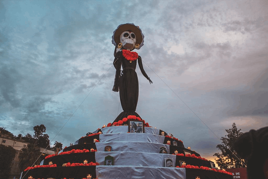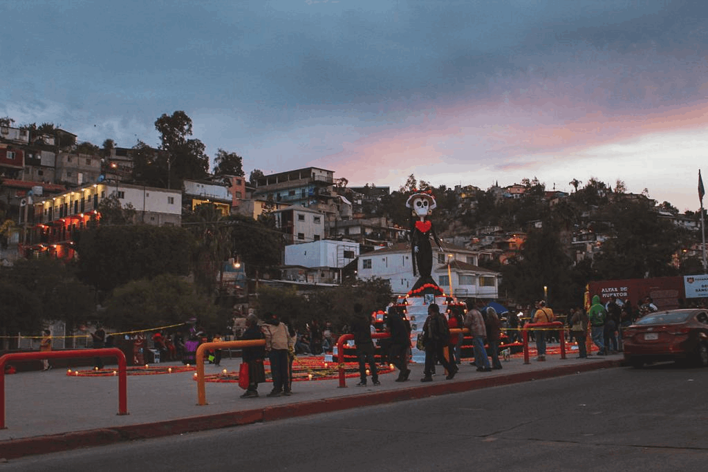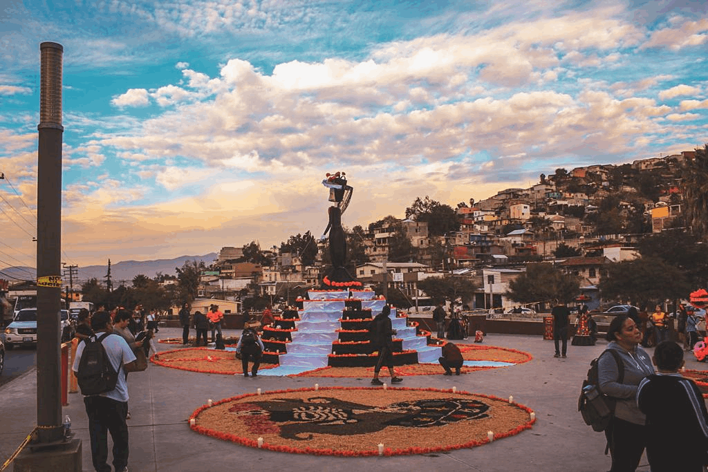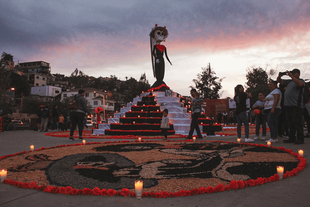 Esta tarde decenas de familias asistieron a presenciar la catrina más grande de Tijuana en conjunto con un altar de muerto.