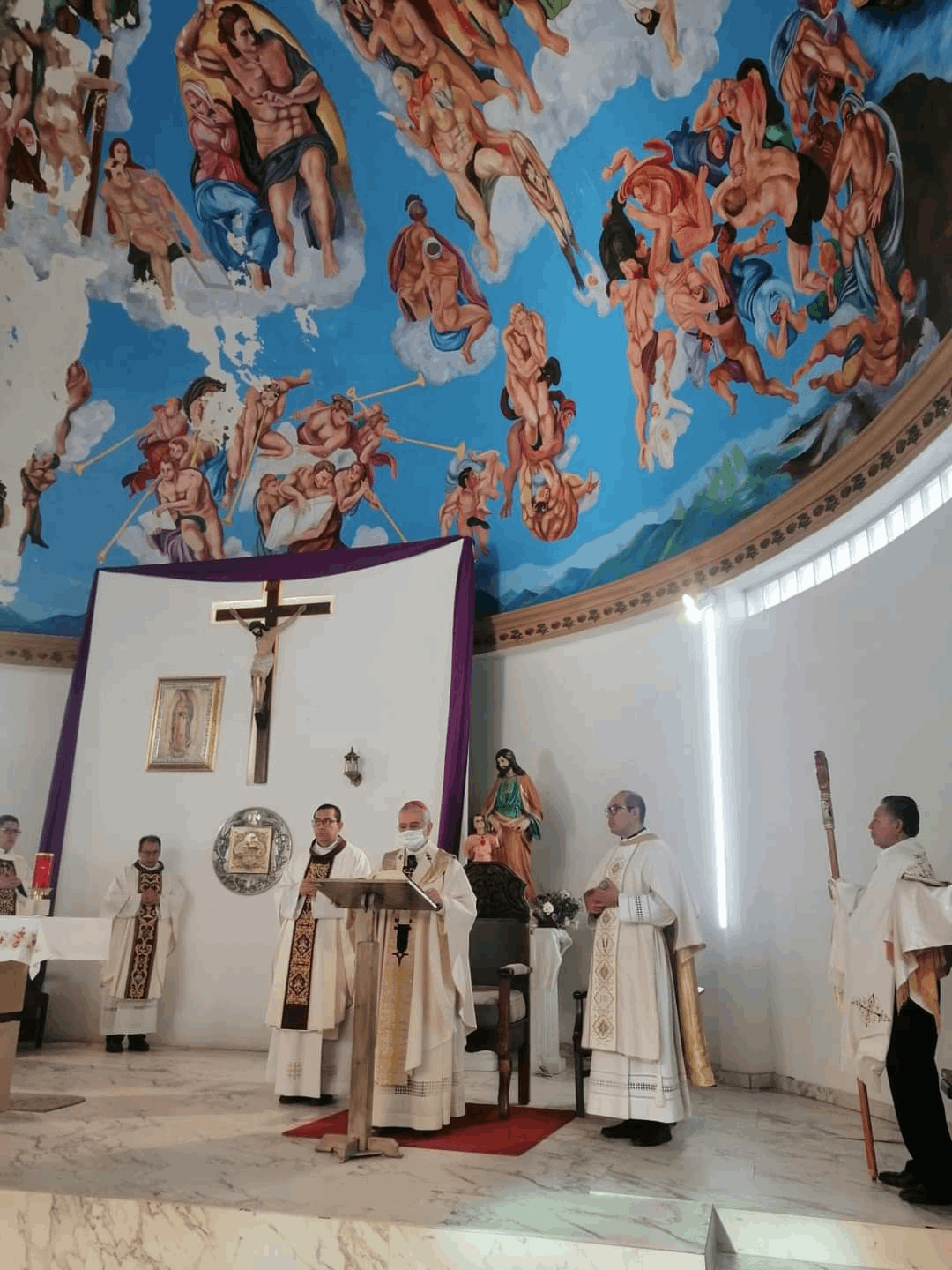 La celebración eucarística se llevó a cabo en la capilla del Centro Diocesano de Pastoral ubicada en la colonia Los Álamos, en comunión con una pequeña comunidad católica, así como de sacerdotes de la ciudad.