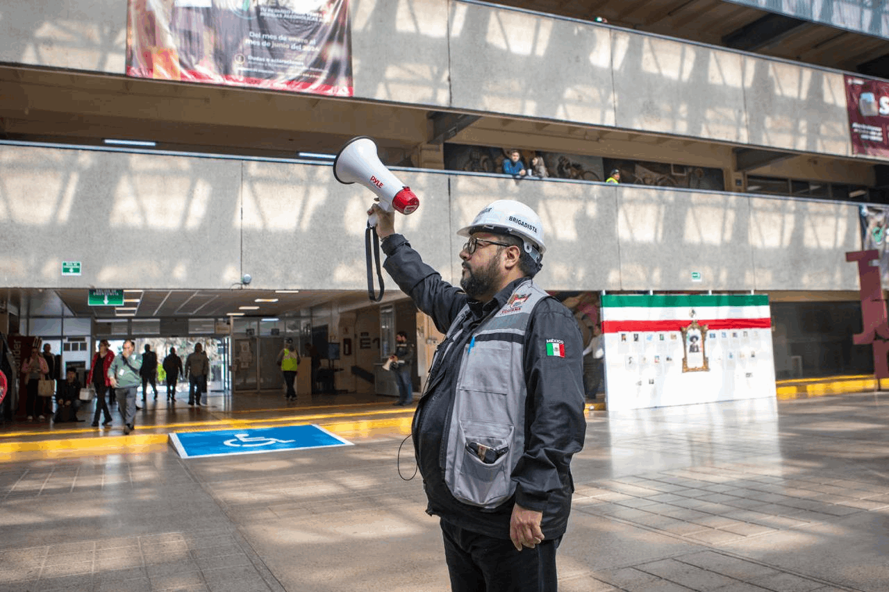 Este año se rompió el récord, con una duración de 3 minutos con 20 segundos, donde alrededor de 1 mil 168 fueron evacuados, entre empleados, funcionarios y personas que se encontraban realizando algún trámite, 135 personas del público y 1 mil 43 trabajadores, informó el director de Protección Civil, Miguel Ángel Ceballos Ramirez.