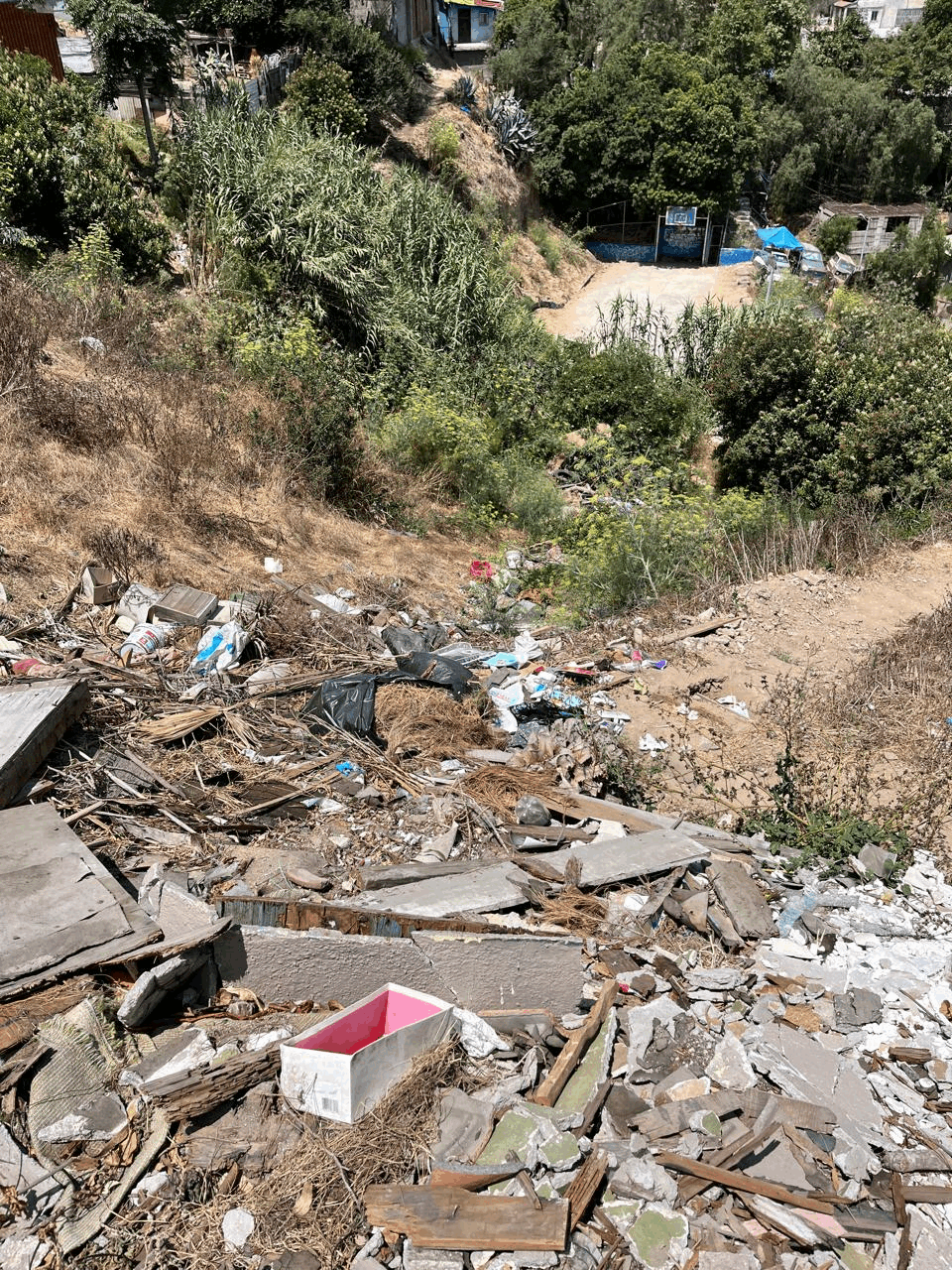 Además, cerro abajo se encuentra la cancha pública de la colonia, a la cual van a dar estos residuos una vez que se desliza la tierra, principalmente en época de lluvias. No sólo eso, sino que refirieron que este espacio también necesita una rehabilitación.